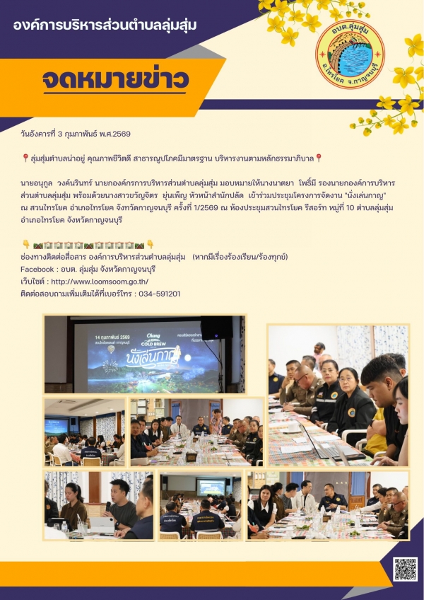ครั้งที่ 1/2569 ณ ห้องประชุมสวนไทรโยค รีสอร์ท หมู่ที่ 10 ตำบลลุ่มสุ่ม อำเภอไทรโยค จังหวัดกาญจนบุรี