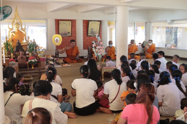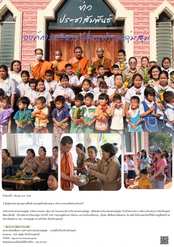 องค์การบริหารส่วนตำบลลุ่มสุ่ม นำโดยนางกมลพร สุริยะวงษ์ รองนายกองค์การบริหารส่วนตำบลลุ่มสุ่ม ปลัดองค์การบริหารส่วนตําบลลุ่มสุ่ม หัวหน้าส่วนราชการ พนักงานส่วนตำบล นำนักเรียนศูนย์พัฒนาเด็กเล็ก เข้าร่วมโครงการวันมาฆบูชา ประจำปี 2569 ร่วมทำบุญตักบาตร ฟังธรรม