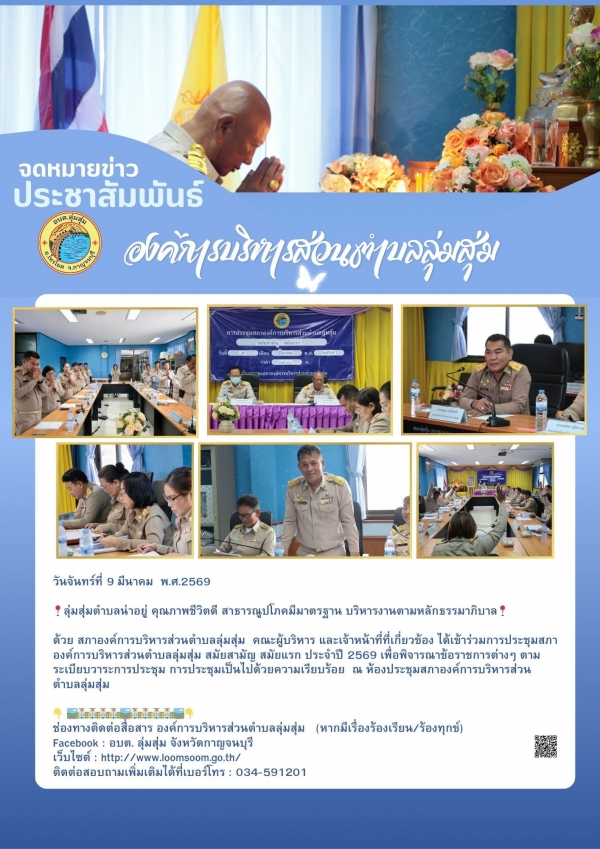 ด้วย สภาองค์การบริหารส่วนตำบลลุ่มสุ่ม คณะผู้บริหาร และเจ้าหน้าที่ที่เกี่ยวข้อง ได้เข้าร่วมการประชุมสภาองค์การบริหารส่วนตำบลลุ่มสุ่ม สมัยสามัญ สมัยแรก ประจำปี 2569 เพื่อพิจารณาข้อราชการต่างๆ ตามระเบียบวาระการประชุม การประชุมเป็นไปด้วยความเรียบร้อย ณ ห้องประชุมสภาองค์การบริหารส่วนตำบลลุ่มสุ่ม