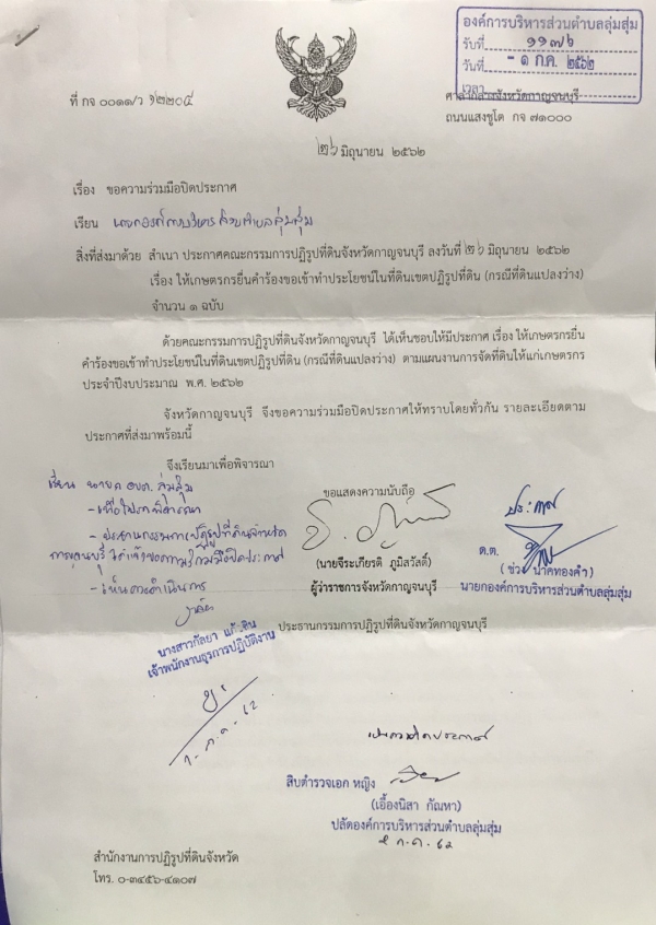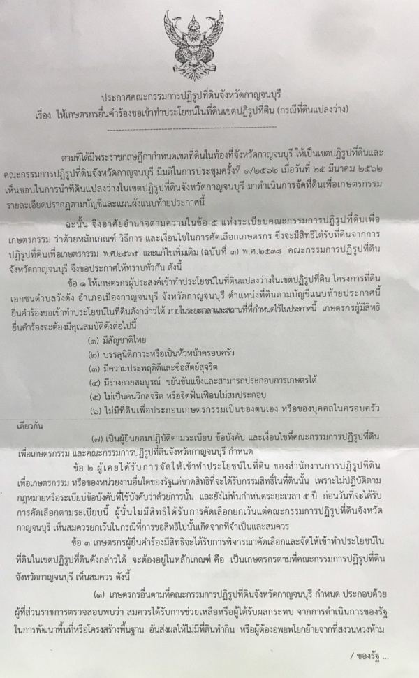 ประชาสัมพันธ์ เรื่อง ให้เกษตรกรยื่นคำร้องขอเข้าทำประโยชน์ในพื้นที่ดิน (กรณีที่ดินแปลงว่าง)