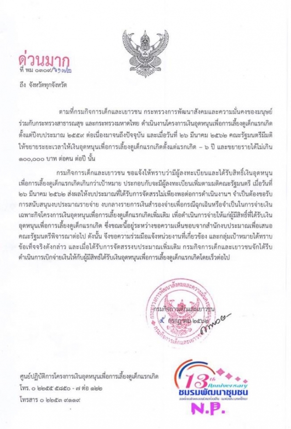 ประชาสัมพันธ์ แจ้งให้ทราบ" โครงการเงินอุดหนุนเด็กแรกเกิด "