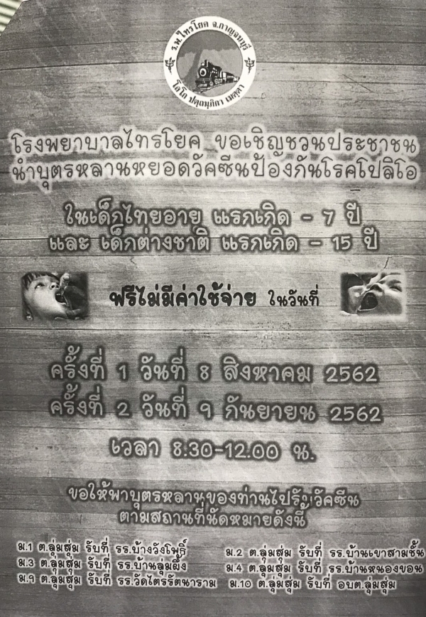 ข่าวประชาสัมพันธ์ ขอเชิญชวนประชาชนนำบุตรหลานหยอดวัคซีนป้องกันโรคโปลิโอ