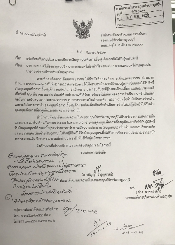 ประชาสัมพันธ์ แจ้งเดือนกันยายนไม่สามารถเบิกจ่ายเงินอุดหนุนเพื่อการเลี้ยงดูแรกเกิดให้กับผู้ขอรับสิทธิ์