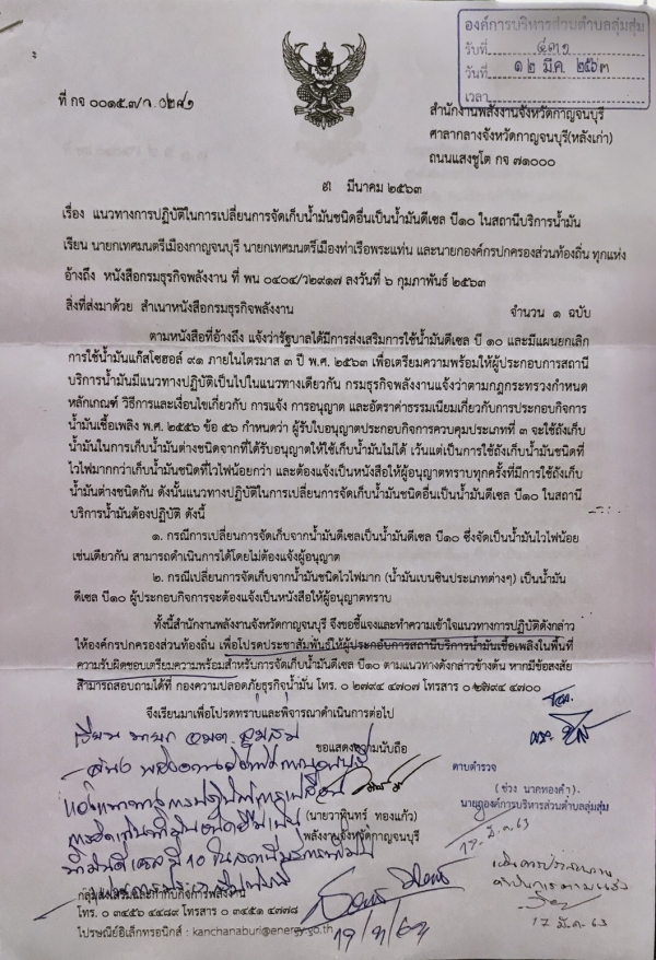 ประชาสัมพันธ์ เรื่อง แนวทางการปฏิบัติในการปฏิบัติในการจัดเก็บน้ำมันชนิดอื่นเป็นน้ำมันดีเซล บี 10 ในสถานีบริการน้ำมัน