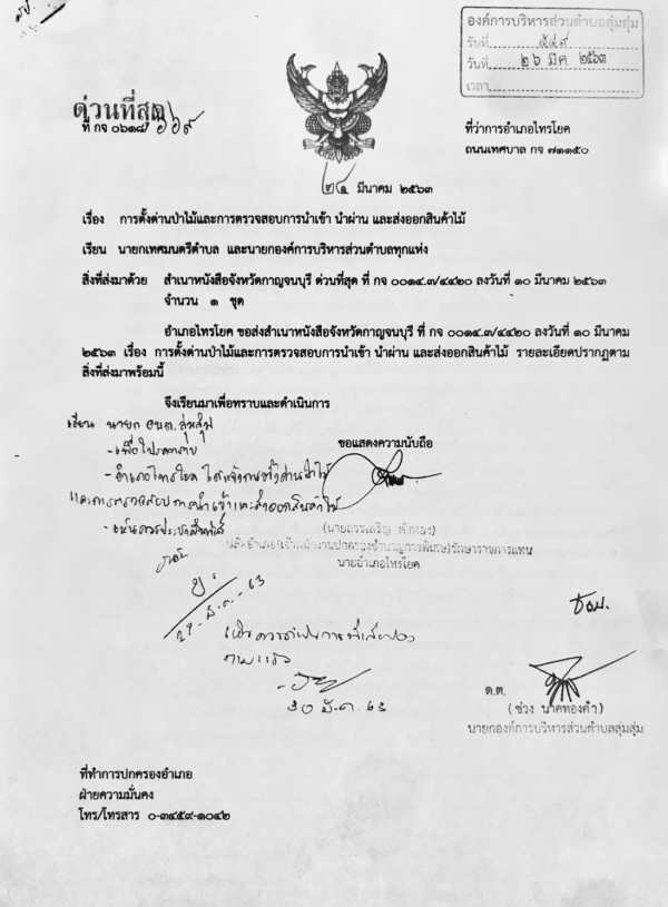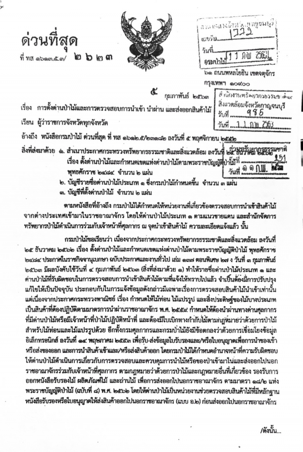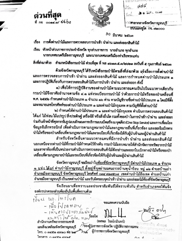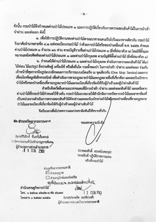 ประชาสัมพันธ์ เรื่องการตั้งด่านป่าไม้และการตรวจสอบการนำเข้า นำผ่าน และส่งออกสินค้าไม้