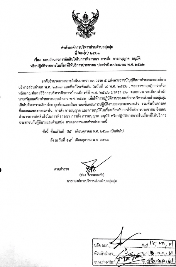 คำสั่งองค์การบริหารส่วนตำบลลุ่มสุ่ม