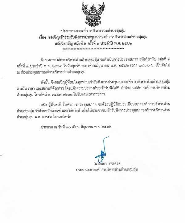 ขอเชิญร่วมรับฟังการประชุมสภาฯ สมัยวิสามัญ สมัยที่ 2 ครั้งที่ 1 ปี 2562