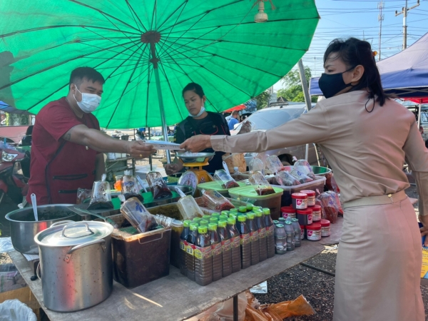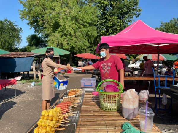 ปฏิบัติตามมาตรการป้องกันโควิด-19 เพื่อสุขอนามัยที่ดีทั้งพ่อค้าแม่ค้า และผู้จับจ่ายใช้สอย