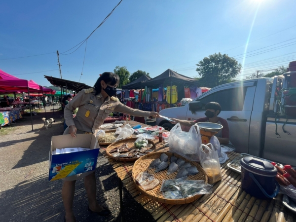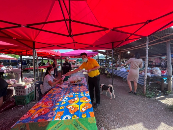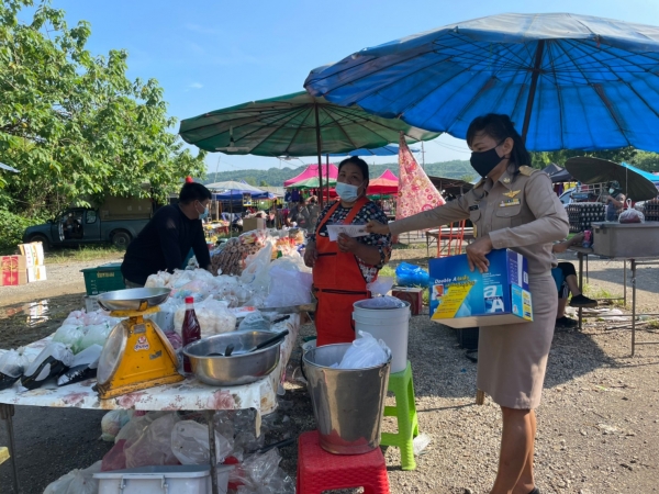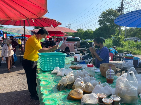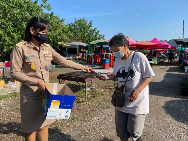 กิจกรรมตรวจตลาดนัดลุ่มผึ้ง แจกแมส ให้ความรู้ฏิบัติตามมาตรการป้องกันโควิด-19 เพื่อสุขอนามัยที่ดีทั้งพ่อค้าแม่ค้า และผู้จับจ่ายใช้สอย