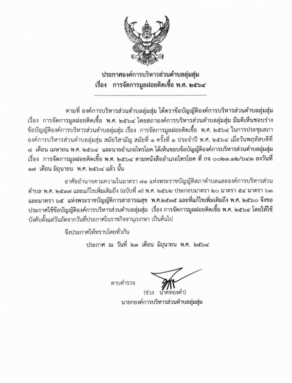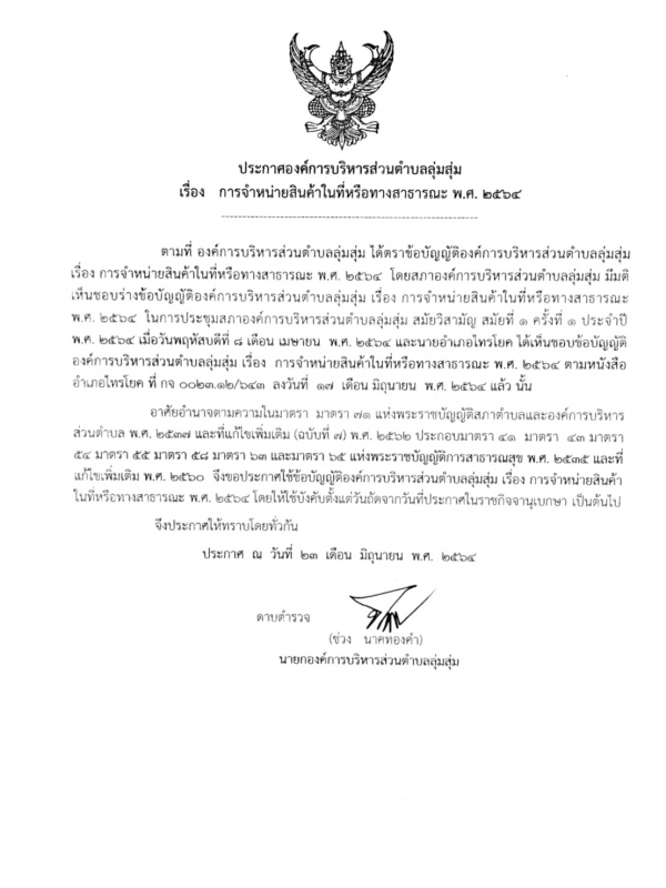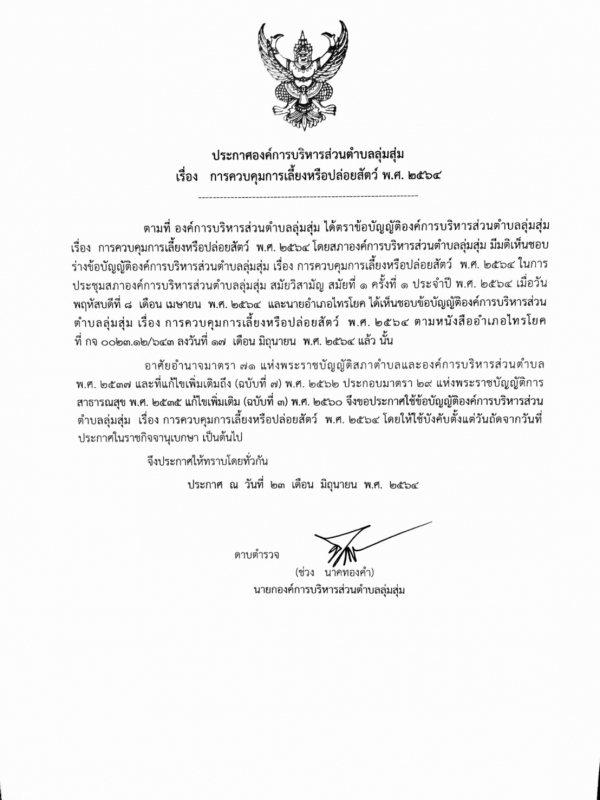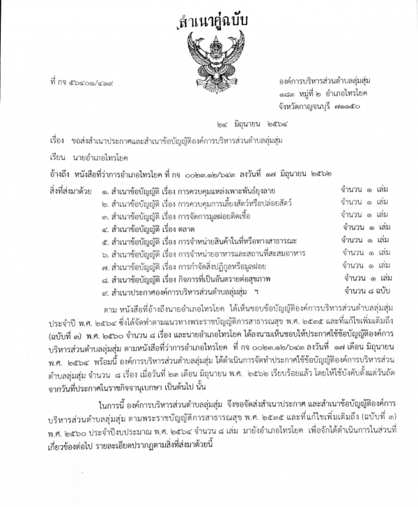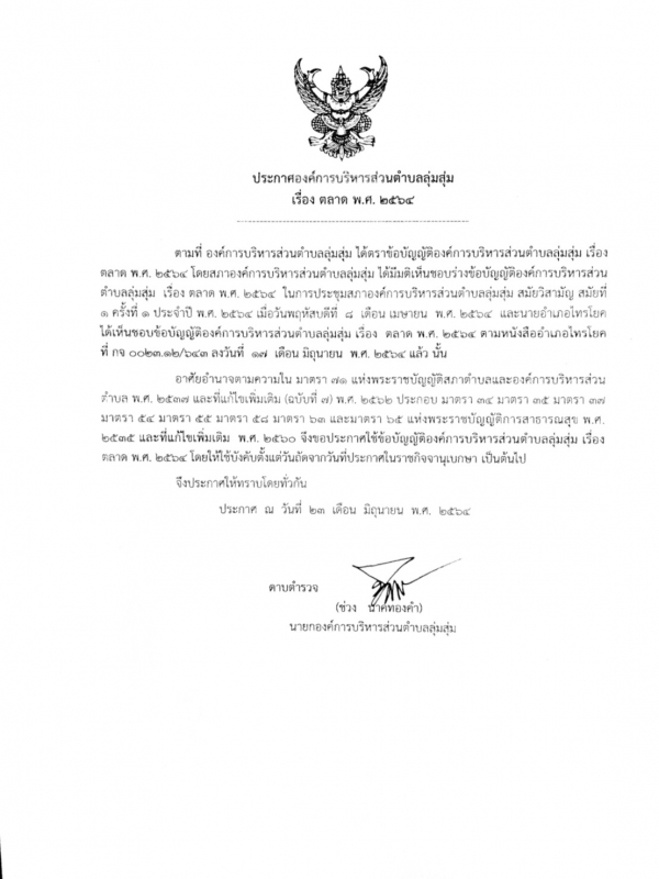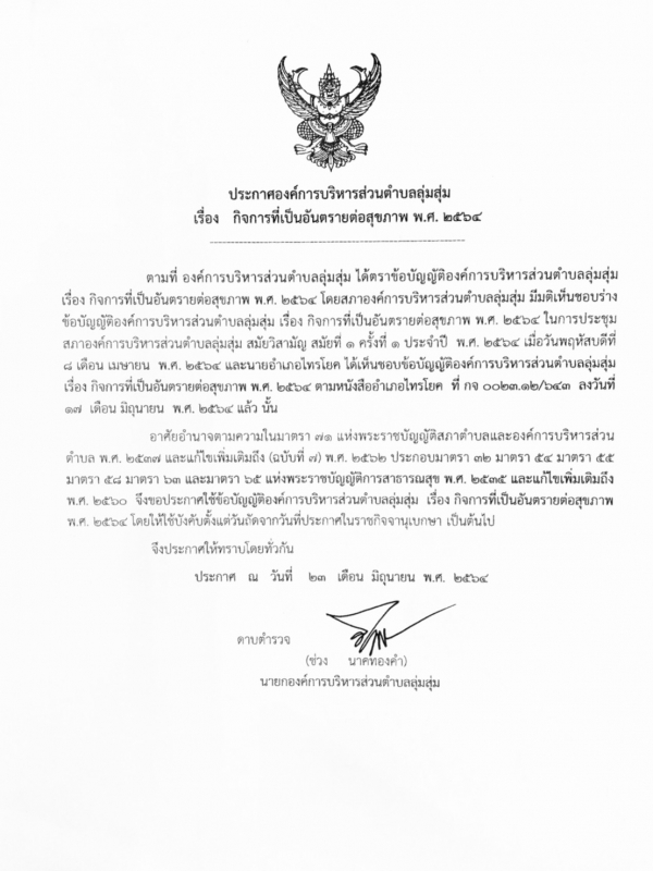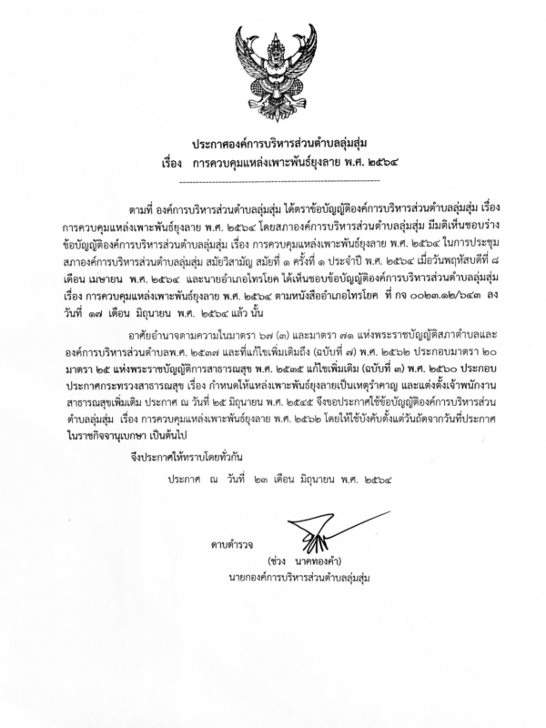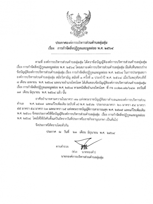 ประกาศและสำเนาข้อบัญญัติองค์การบริหารส่วนตำบลลุ่มสุ่ม