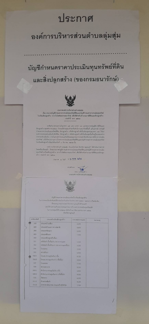 ประกาศบัญชีกำหนดราคาประเมินทุนทรัพย์ที่ดินและบัญชีกำหนดราคาประเมินทุนทรัพย์โรงเรือนและสิ่งปลูกสร้าง(ธนารักษ์) ประจำปี พ.ศ.2563