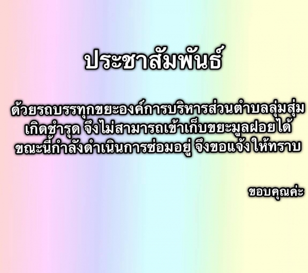 ประชาสัมพันธ์ เรื่อง รถบรรทุกขยะองค์การบริหารส่วนตำบลลุ่มสุ่ม เกิดชำรุด