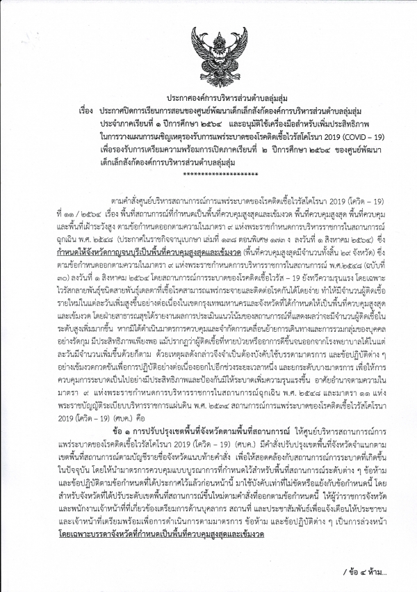 ประกาศองค์การบริหารส่วนตำบลลุ่มสุ่ม เรื่องประกาศปิดการเรียนการสอนของศูนย์พัฒนาเด็กเล็กสังกัดองค์การบริหารส่วนตำบลลุ่มสุ่ม ประจำภาคเรียนที่ 1ปีการศึกษา 2564