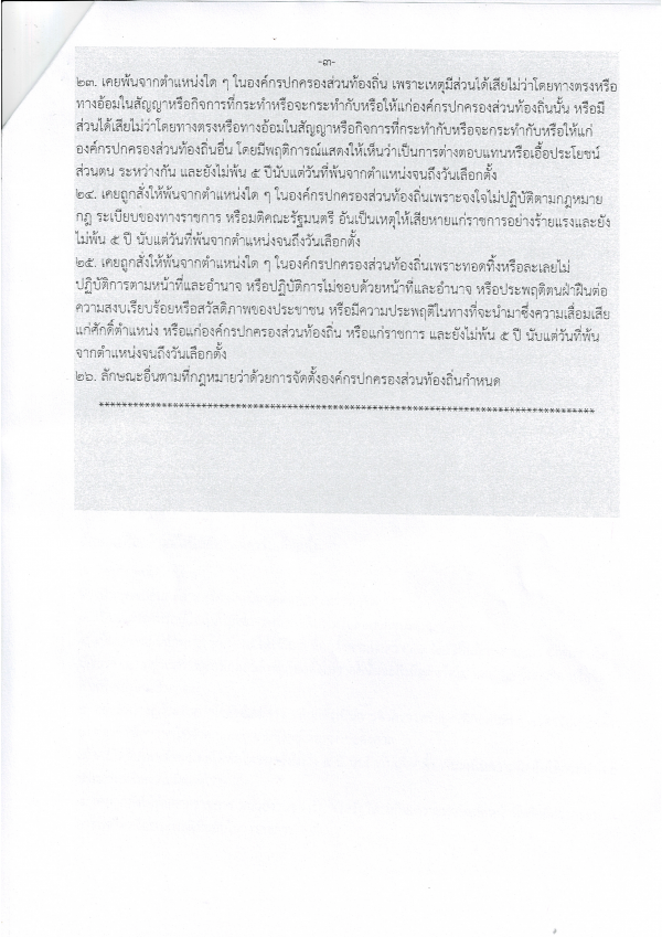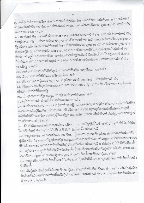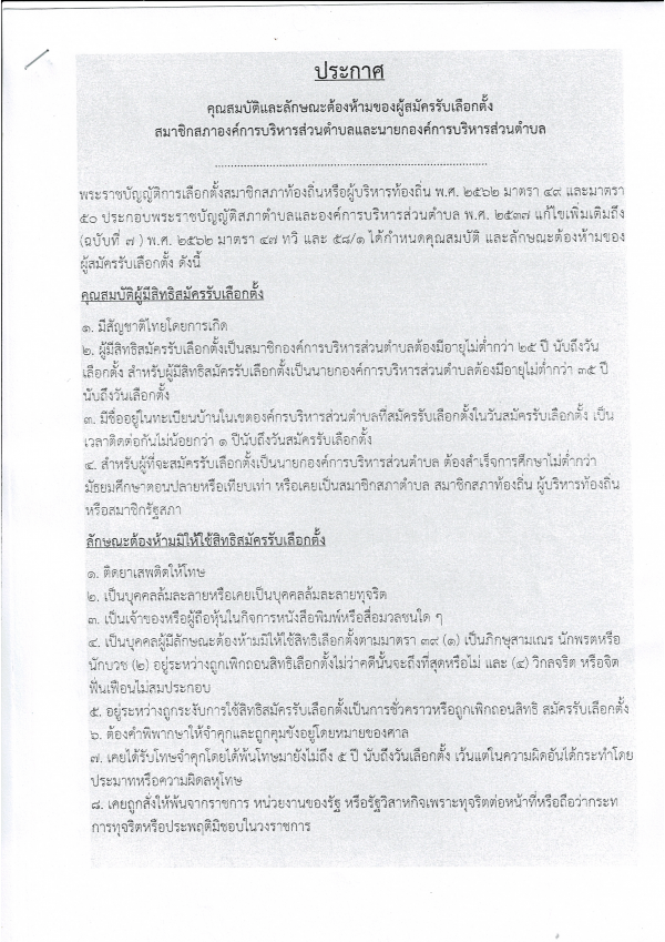 ประกาศ เรื่องคุณสมบัติและลักษณะต้องห้ามของผู้สมัครรับเลือกตั้งสมาชิกสภาองค์การบริหารส่วนตำบลและนายกองค์การบริหารส่วนตำบล
