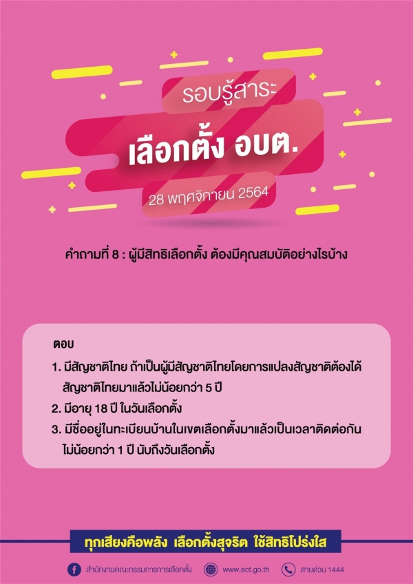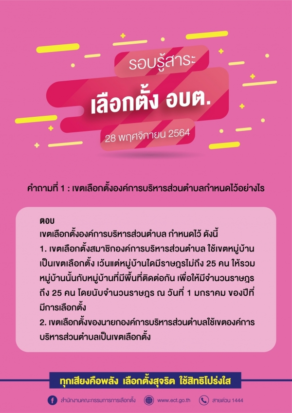 ประชาสัมพันธ์ รอบรู้สาระ เลือกตั้ง อบต 28 พฤศจิกายน 2564