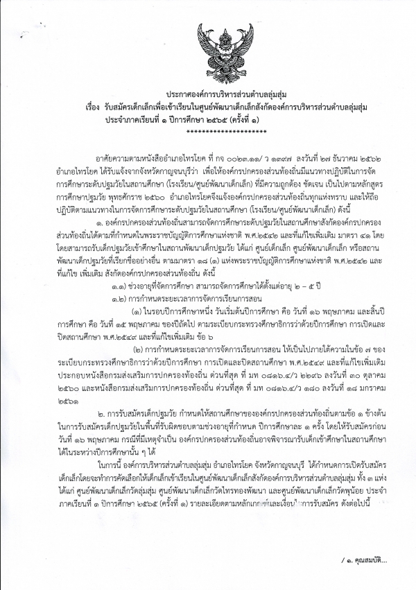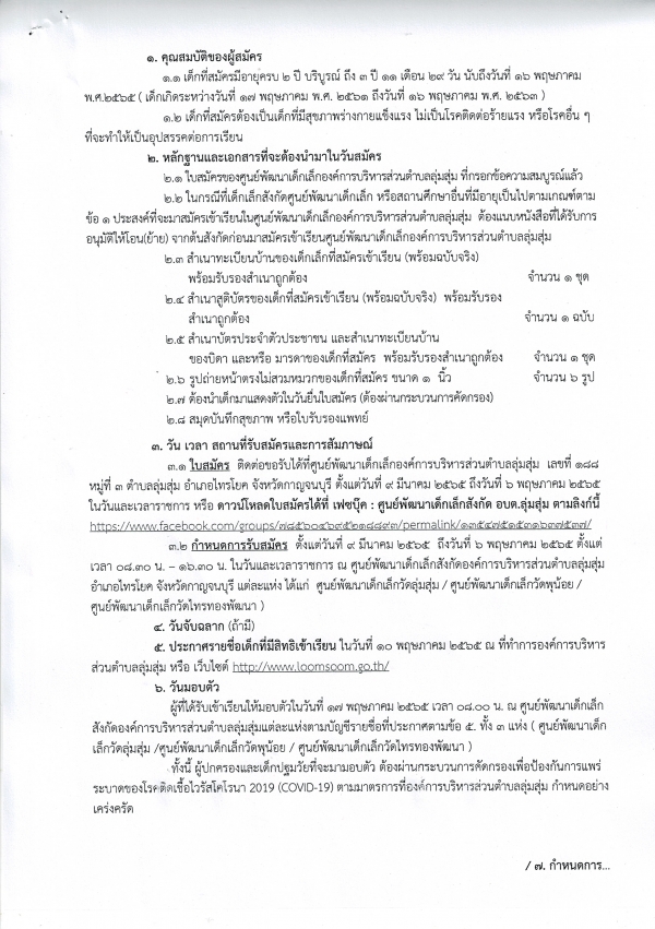 ประชาสัมพันธ์ การรับสมัครเด็กเล็กเพื่อเข้าเรียนในศูนย์พัฒนาเด็กเล็กในสังกัดองค์การบริหารส่วนตำบลลุ่มสุ่ม ประจำปีการศึกษา 2565