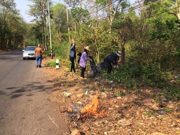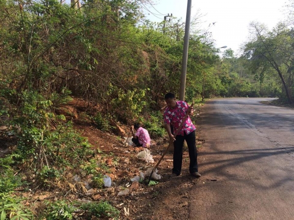 นำข้าราชการและเจ้าหน้าที่ทำความสะอาดจุดให้อาหารลิง บริเวณหมู่ที่ 9 บ้านไตรรัตน์ ต.ลุ่มสุ่ม อ.ไทรโยค จ.กาญจนบุรี