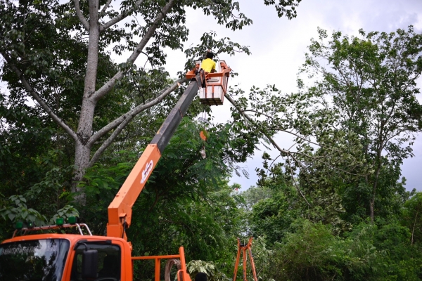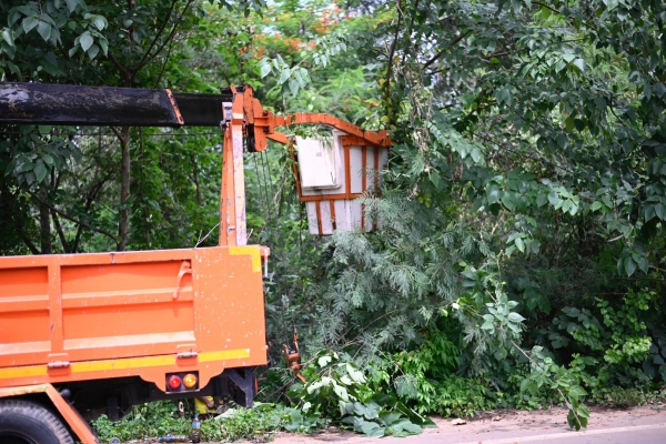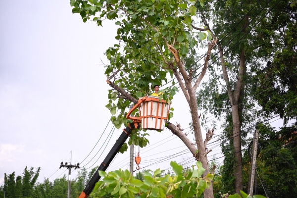 สนับสนุนนำรถกระเช้าลงพื้นที่ ตัดกิ่งไม้ที่เอนกีดขวางสองข้างทาง บดบังสายตา เวลาสัญจร ไฟส่องสว่าง และกิ่งไม้ที่ไม่แข็งแรง โดยมีนายจำลอง แก้วอัมพวา ส.อบต.ม.3 พร้อมชาวบ้านร่วมทำงาน เพื่อปรับปรุงภูมิทัศน์และลดการเกิดอุบัติเหตุภายในหมู่บ้าน