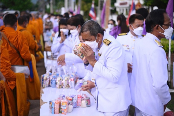 ร่วมพิธีทำบุญตักบาตรถวายพระราชกุศล เนื่องในโอกาสวันเฉลิมพระชนมพรรษา สมเด็จพระนางเจ้าสุทิดา พัชรสุธาพิมลลักษณ พระบรมราชินี พระสงฆ์และสามณร
