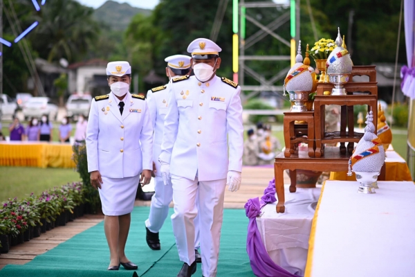 หัวหน้าส่วนราชการ/หน่วยงานรัฐวิสาหกิจ/องค์กรปกครองส่วนท้องถิ่น/ภาคเอกชน และภาคประชาชนถวายพานพุ่มทอง พุ่มเงิน ตามลำดับ เนื่องในวันเฉลิมพระชนมพรรษา สมเด็จพระนางเจ้าสุทิดา พัชรสุธาพิมลลักษณ พระบรมราชินี