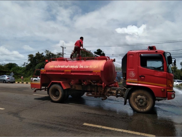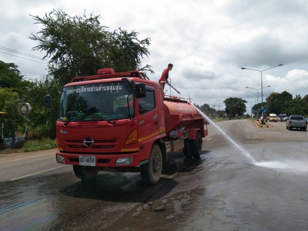 นายอนุกูล วงค์นรินทร์ นายกองค์การบริหารส่วนตำบลลุ่มสุ่ม มอบหมายให้เจ้าหน้าที่พนักงาน นำรถบรรทุกน้ำออกทำความสะอาดล้างพื้นถนน เนื่องจากเกิดอุบัติเหตุรถชนกัน อาจก่อให้เกิดอันตรายต่อผู้สัญจรไปมาได้