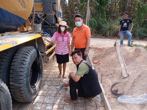 จ่าสิบเอกจตุรงค์ ทั่งศรี รองนายกองค์การบริหารส่วนตำบลลุ่มสุ่ม พร้อมคณะกรรมการลงพื้นที่ตรวจการขึ้นแบบและเทคอนกรีต หมู่ที่ 9 บ้านไตรรัตน์ ตำบลลุ่มสุ่ม อำเภอไทรโยค จังหวัดกาญจนบุรี