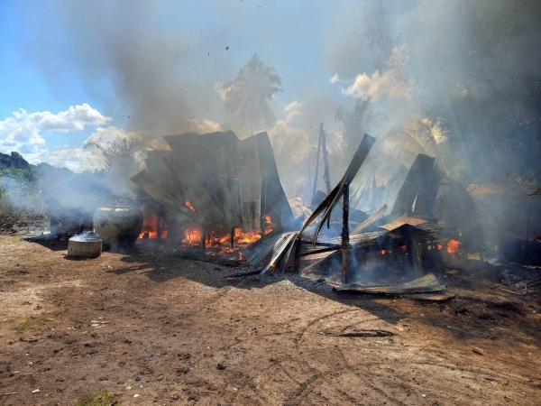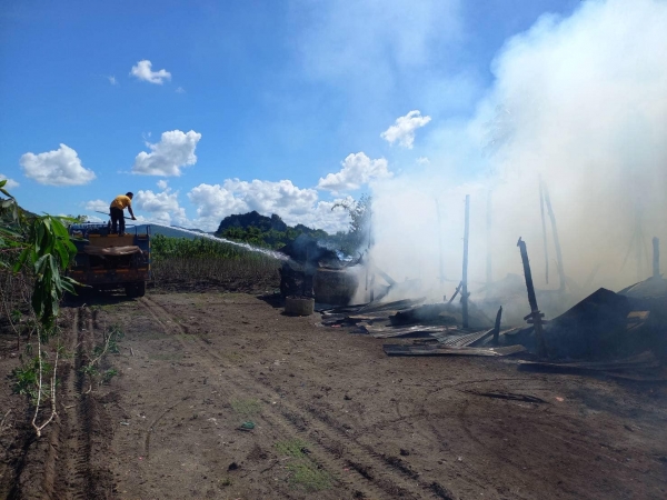 เกิดเหตุไฟไหม้บ้าน ผู้ได้รับความเดือดร้อนเป็นคนกลุ่มชาติพันธุ์ หมู่ 8 บ้านเสรีธรรม ตำบลลุ่มสุ่ม อำเภอไทรโยค จังหวัดกาญจนบุรี